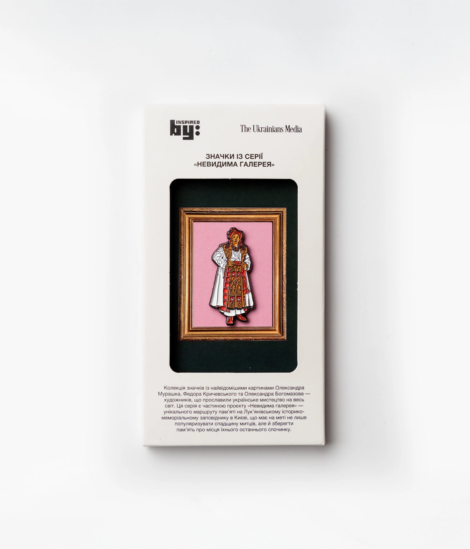 Ця серія пінів є частиною проєкту «Невидима галерея» — маршруту пам’яті на Лук’янівському історико-меморіальному заповіднику в Києві, присвяченому художникам, які прославили українське мистецтво на весь світ.